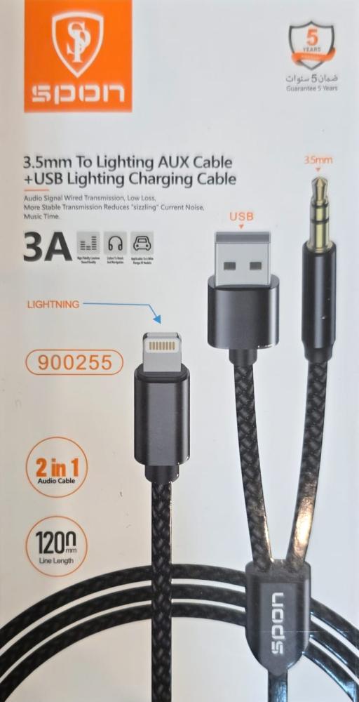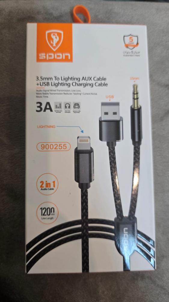 - اتصال سهل: يأتي الكابل مزودًا بمنفذ Lightning ومنفذ AUX، مما يجعله مثاليًا لتوصيل جهازك بالسيارات أو مكبرات الصوت.